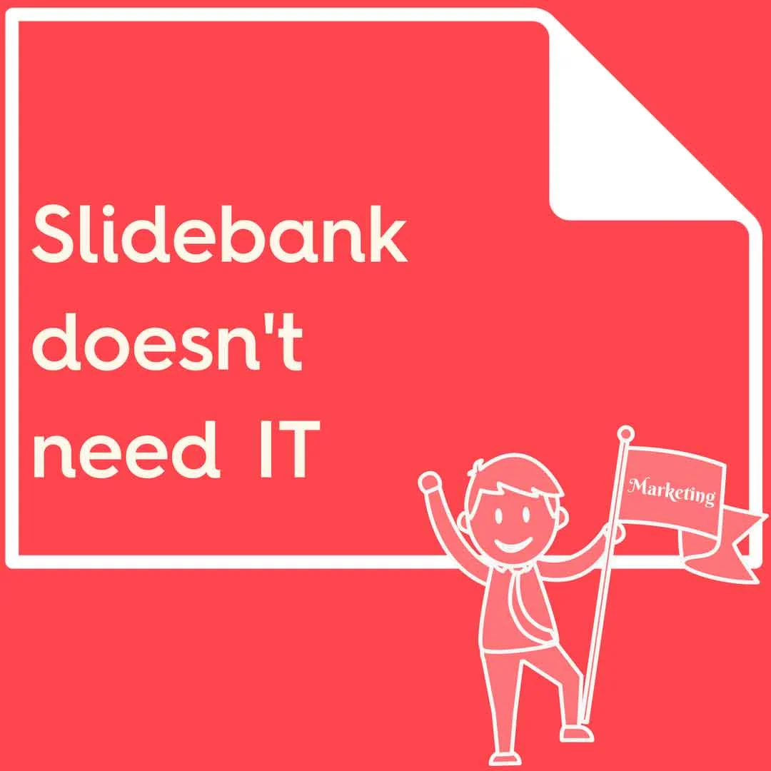 This means Slidebank is low maintenance from an ongoing perspective, but also means that a Marketing team, for example, can quickly get up and running without needing anything from IT.