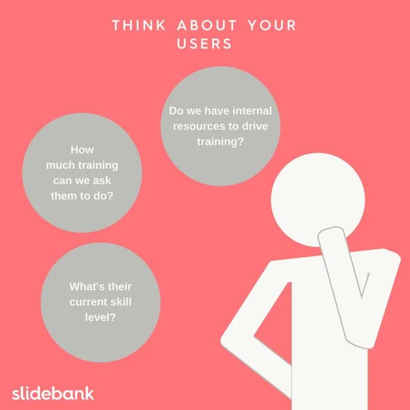 Take a few minutes to look through the groups of users you’ve identified and think about their existing PowerPoint skills. This will help you to plan your end user training strategy.